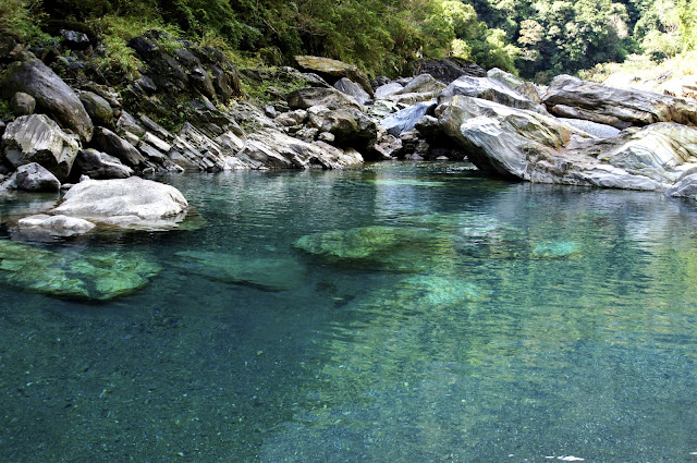 跟砂卡礑一樣,慕谷慕魚也是有小徑可以下去戲水,當然也是必須在不汙染不破壞環境的情況下。這裡曾經美麗,具有豐富的生態體系,卻被遊客破壞過;好不容易她又再次美麗了,人類真的不應該又重蹈覆轍。