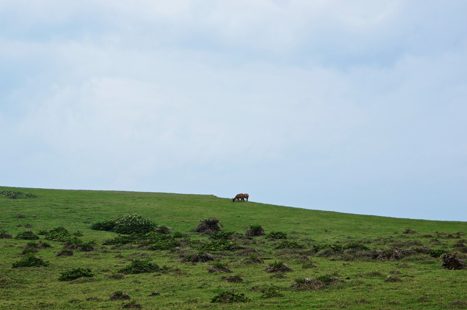 牛頭山大草原,看起來很舒服的草皮但走起來卻不是那麼一回事,特別是當你穿夾腳拖的時候。沒錯,草踩起來是硬的,跟前一陣子在鹿野看到的草原差很多。這次看到兩片大草原,都是在海岸邊的山頂上。草皮的邊緣下去就是懸崖峭壁,那下去是會出人命的,除非你有跟山羊一樣的好功夫。
