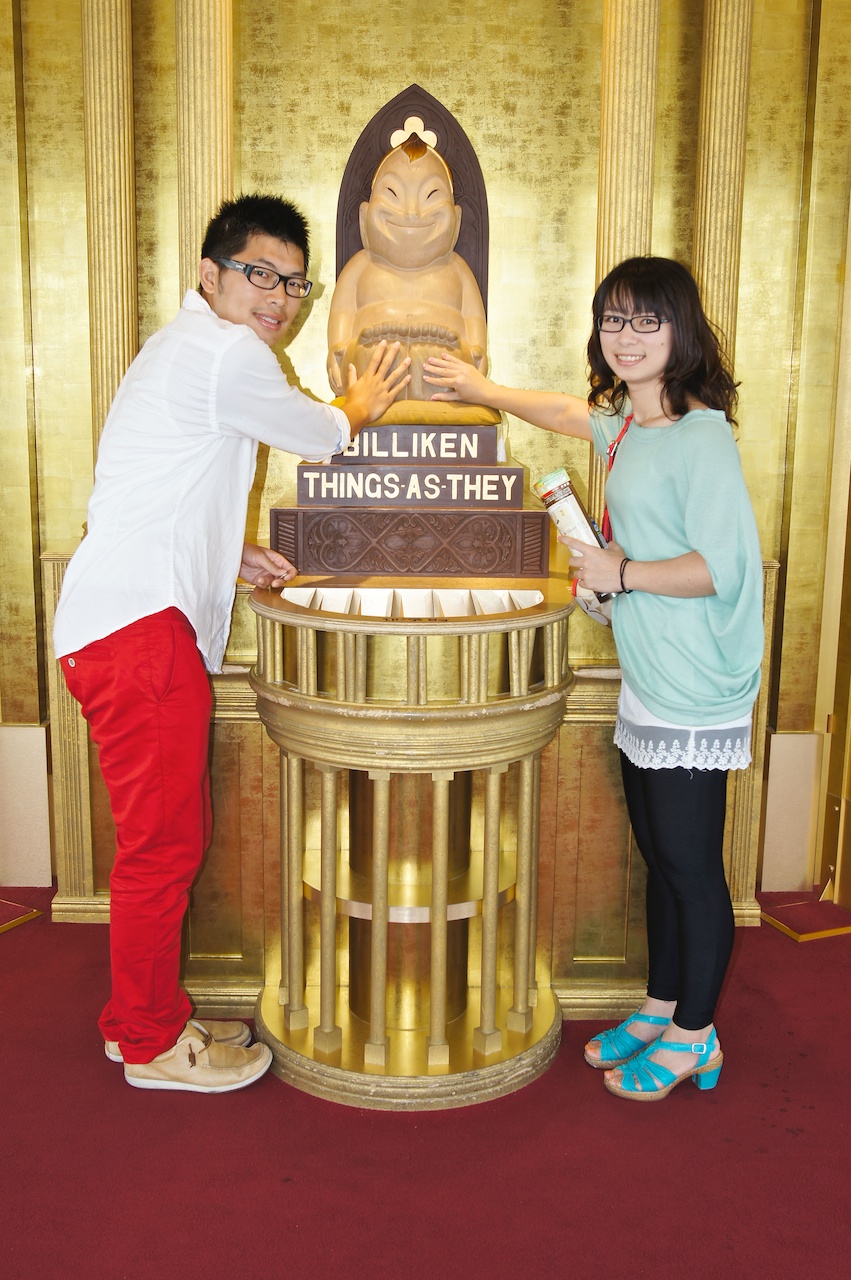 通天閣白天看起來就是支平凡的鐵塔,不過似乎有著不平凡的過去以及繁華的時期。上樓時電梯頂部會變成動畫,內容大概跟下面這尊神有些關係。