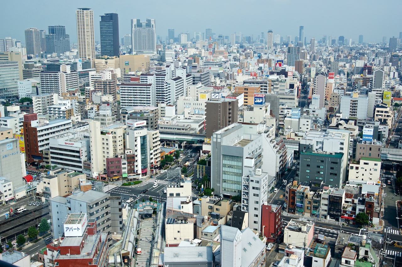 通天閣也是個看夜景的好地方,不過我們大白天來,天空又有點灰灰的,就稍微看一下大阪的街道吧。