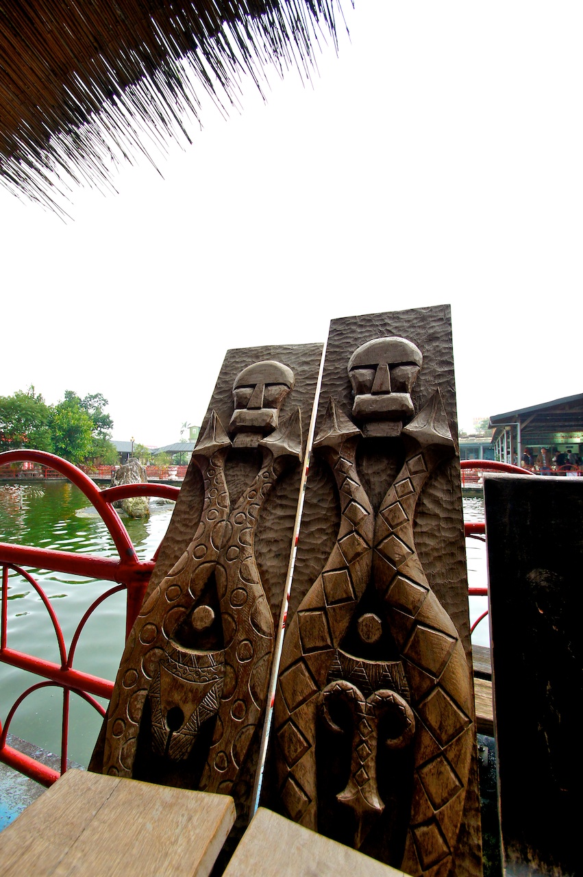 吊橋旁有很可愛的石頭圖騰,不只有魚,還有很多魚...不是啦,還有很多其他不同動物的圖騰,不過我真的覺得魚最討喜,大概是一直聽到水聲吧。