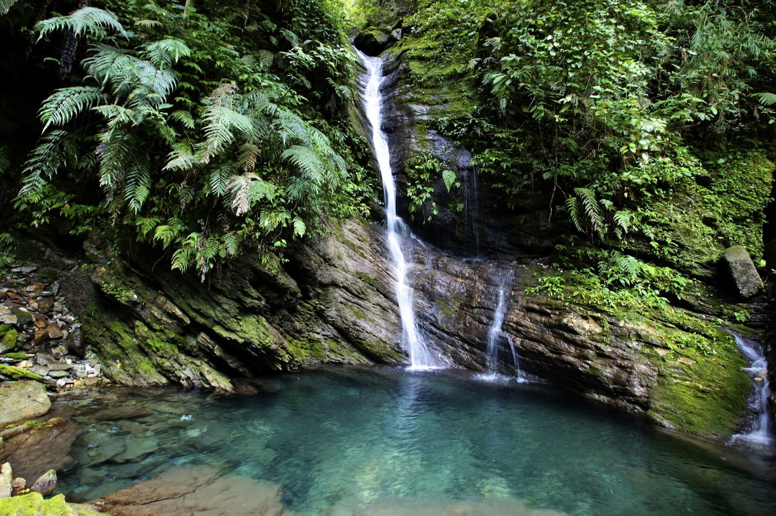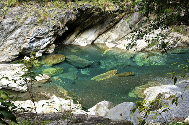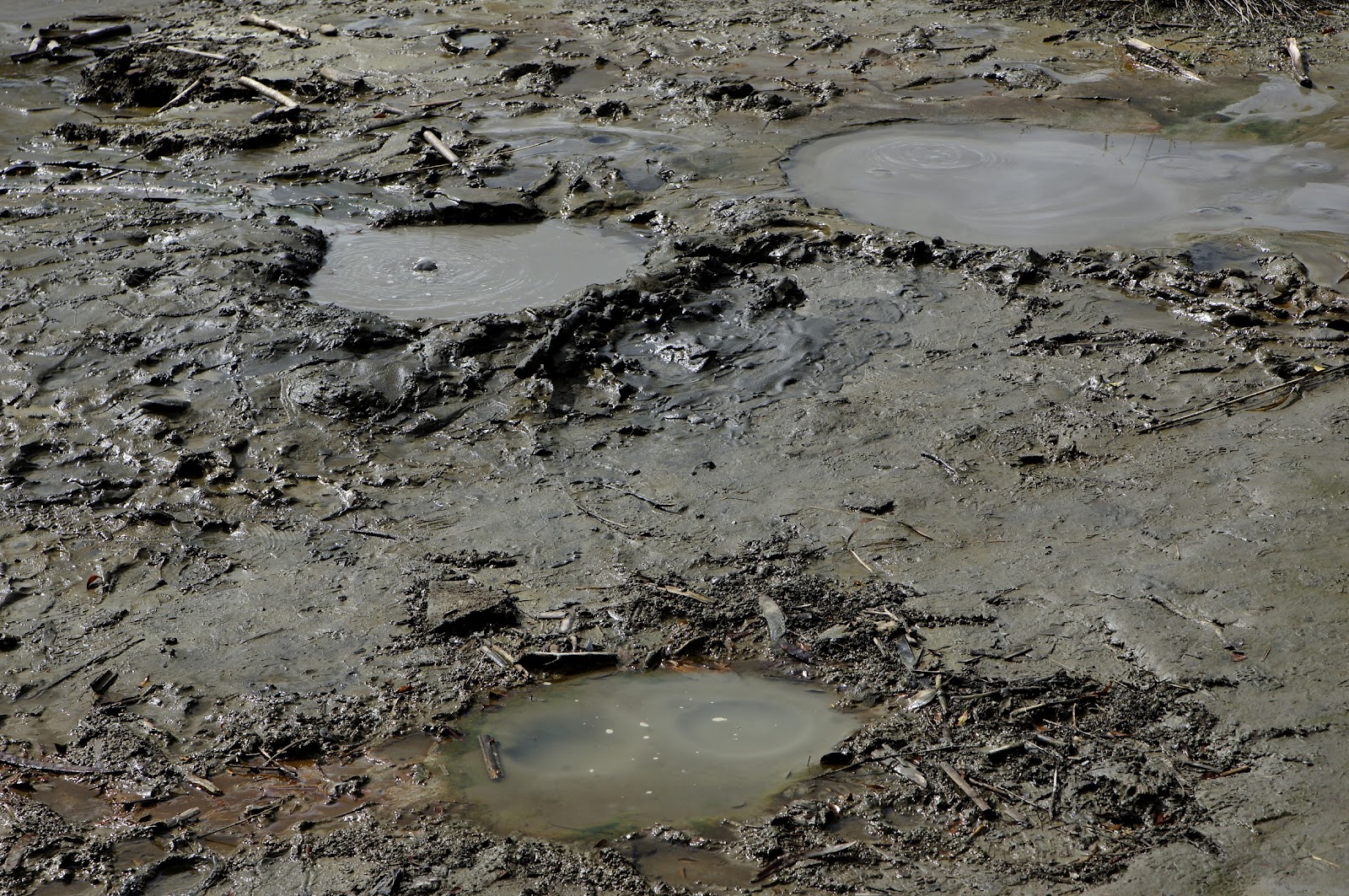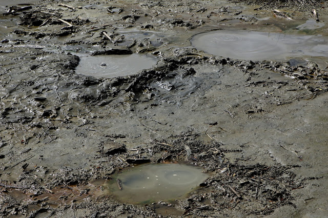 然後我繞進一個叫做羅山大魚池的地方,魚池的後面是瀑布,魚池往裡面走一點會看到泥火山,地層的天然氣噴發造成的特殊地理環境,也因此這裡的植物有點特別。