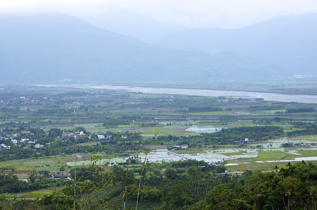 這邊還有一個賣點,可以滑草,但因為我行李太多又沒人幫我顧而作罷,絕對不是害怕翻車丟臉或從底下爬上來要花很長一段時間。就在草原的另一頭是飛行傘起飛的地方,視野良好,可以看到鹿野溪跟卑南溪沖切的痕跡。當然,下方整齊的田地據說是當時日本人很喜歡這邊,而他們有喜歡整齊方正的格局,因此這邊的農田大多呈一格一格整齊的格子狀。