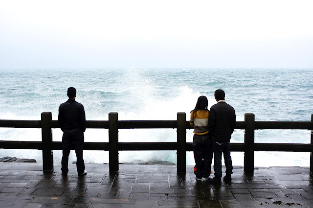 跑這趟就是要慢慢來慢慢來,雖然一開始噴雨很討厭,但慢慢來真的會看到一些有趣的畫面。一個人看海跟兩個人看海,還有一群人看海都有不同的樂趣。一個人可以很帥氣可以很灑脫也可以很孤僻,為了不讓自己看起來太孤僻,我開始跟不同的遊客攀談,甚至是幫忙拍一些合照,畢竟一群人出遊有人不在畫面中看起來就有點可惜。