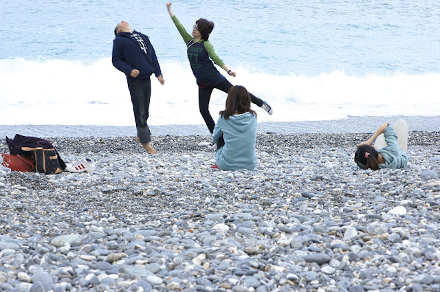 不知道為什麼人一到海邊就想跳躍玩借位遊戲,這其實不是很輕鬆的一件事情,攸關到拍照者的功力跟主角們的體力與默契,常常是這個跳了那個才準備起跳。當然我後來也有幫他們拍一張合照,小聊了一下,如果剛好有人認識他們,請跟我說一聲。