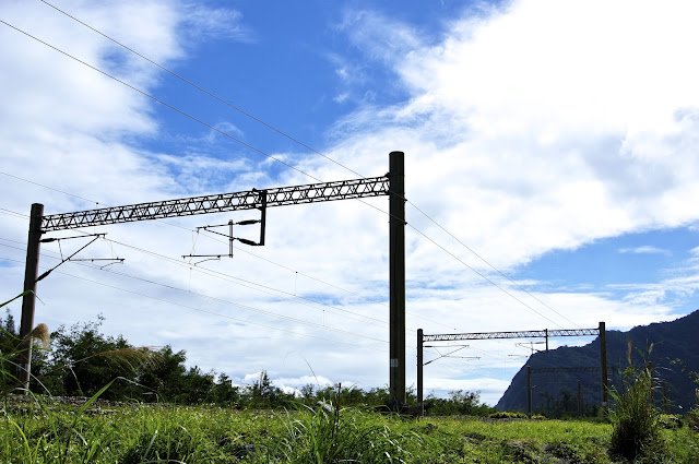 我在這邊遇到環島雙人組,從屏東上來,也停在這個空間欣賞這一幕。工廠看起來很遙遠,但實際上大概才10分鐘左右的車程。在和平的休息站整頓一下,本來想等火車經過,但東部幹線班次似乎不怎麼密集,等了一陣子都沒看到火車的影子,可能這就是運氣吧,有藍天白雲就該偷笑了。