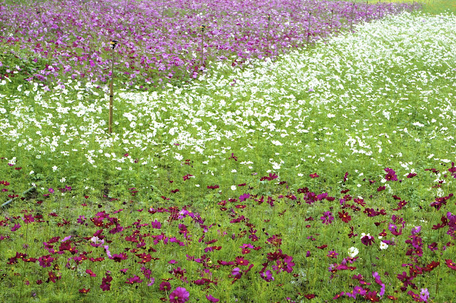 聯絡一下朋友順便躲個雨,意外發現一小小片花田,不過波斯菊們狀況沒有很好有點可惜。