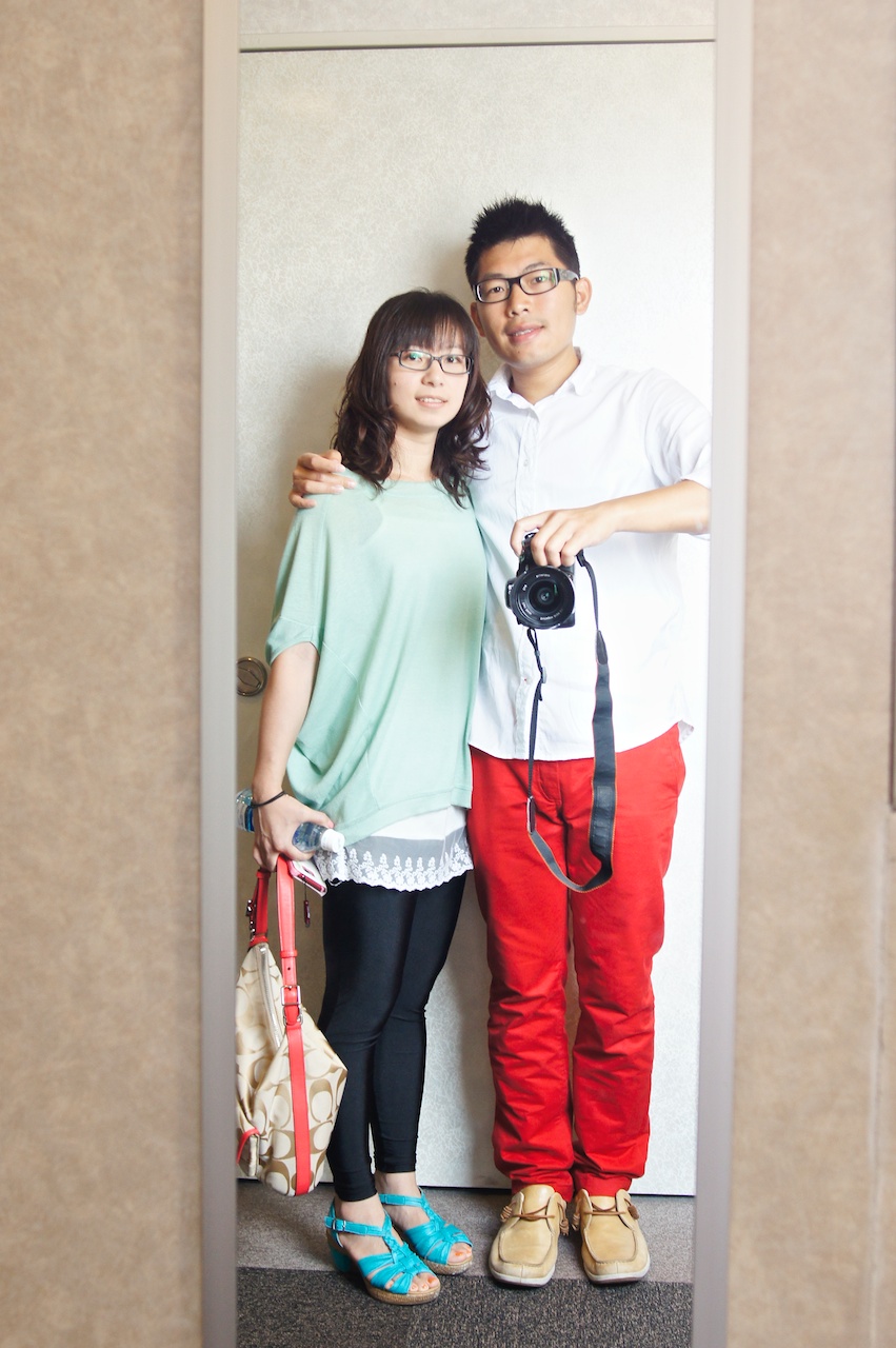 房間外面電梯旁有一面全身鏡,讓你在進電梯之前可以再仔細看一下自己的衣著哪裡怪怪的。久違的粗筐眼鏡這次旅行也把它帶出來了。