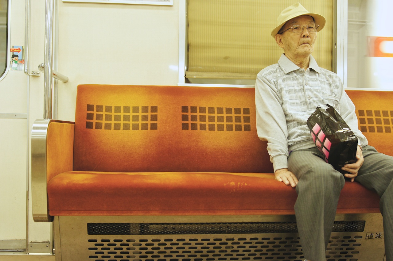 日本的老人家出門幾乎都會戴頂帽子,不分男女。地鐵站內牆上的裝飾。我很喜歡在等車的時候看這些東西,而這習慣在台灣就已經有了。