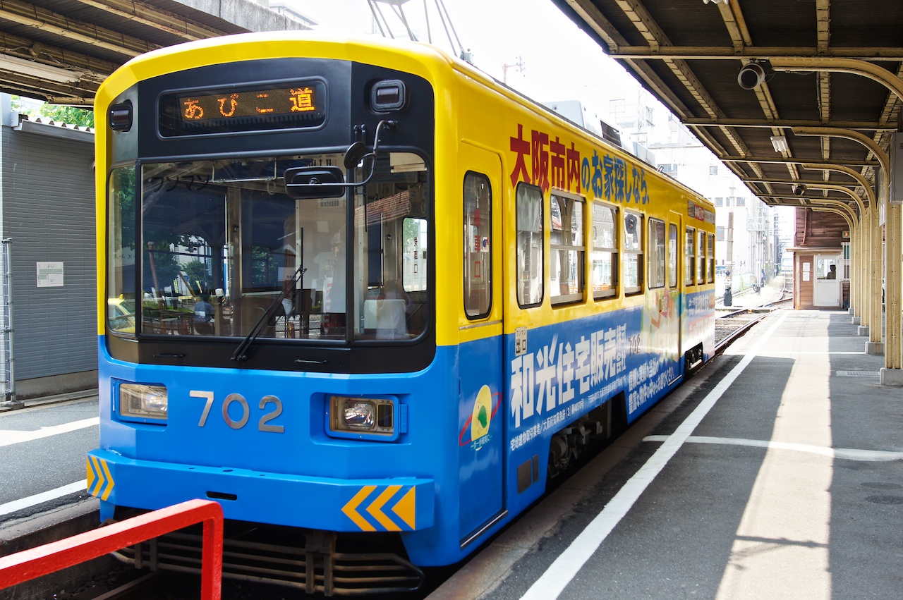 說到這個阪堺電車,我們在觀景台上有看到一台正在移動的單節電車,比對地圖之後發現是阪堺電車,車站離通天閣並不遠,就過來這邊看看了。