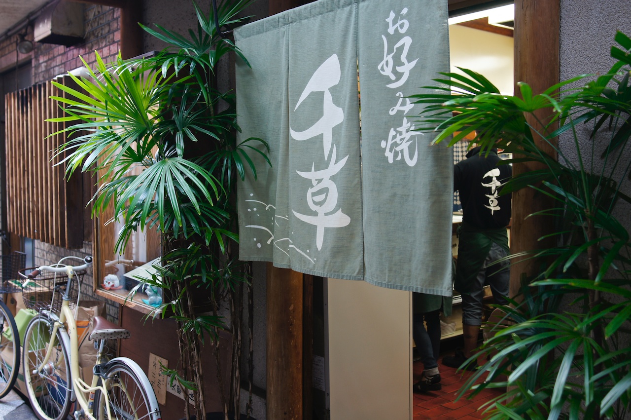 這間隱身在天神橋筋的大阪燒名為千草,雖然知道地址了但對於日本地址編排方式完全陌生,只好找來當地的學生妹問路。只看學生妹帥氣的拿出iphone迅速地在map上輸入地址,然後又帥氣地用英文告訴我們怎麼走比較快。很好,成功地完成國民外交,果然是台日友好關係。