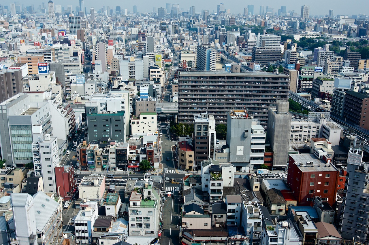 通天閣也是個看夜景的好地方,不過我們大白天來,天空又有點灰灰的,就稍微看一下大阪的街道吧。