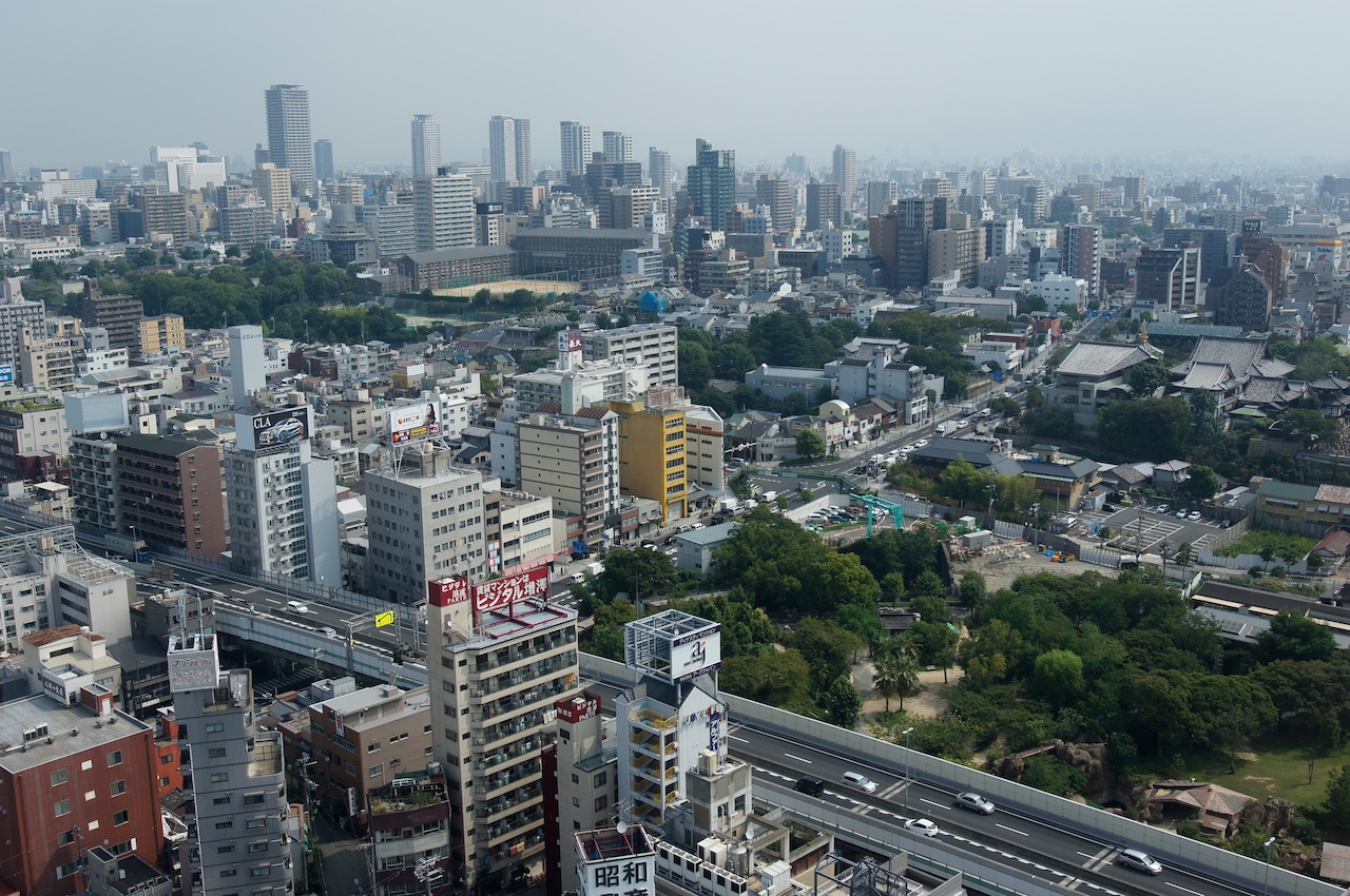 一張大阪市空拍全景圖。