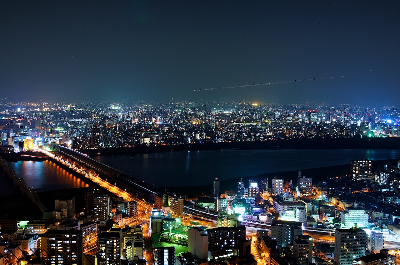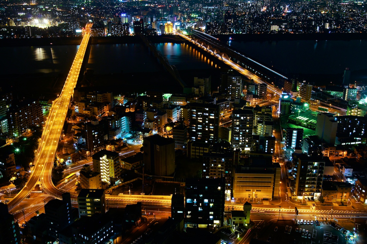 位於大阪最多百貨公司的地區,這裡的夜景當然是相當不簡單。高樓大廈除了多之外,還各有特色,另外河景跟鐵橋也構築成特別的景緻,如果有來大阪,這裡肯定不能錯過。