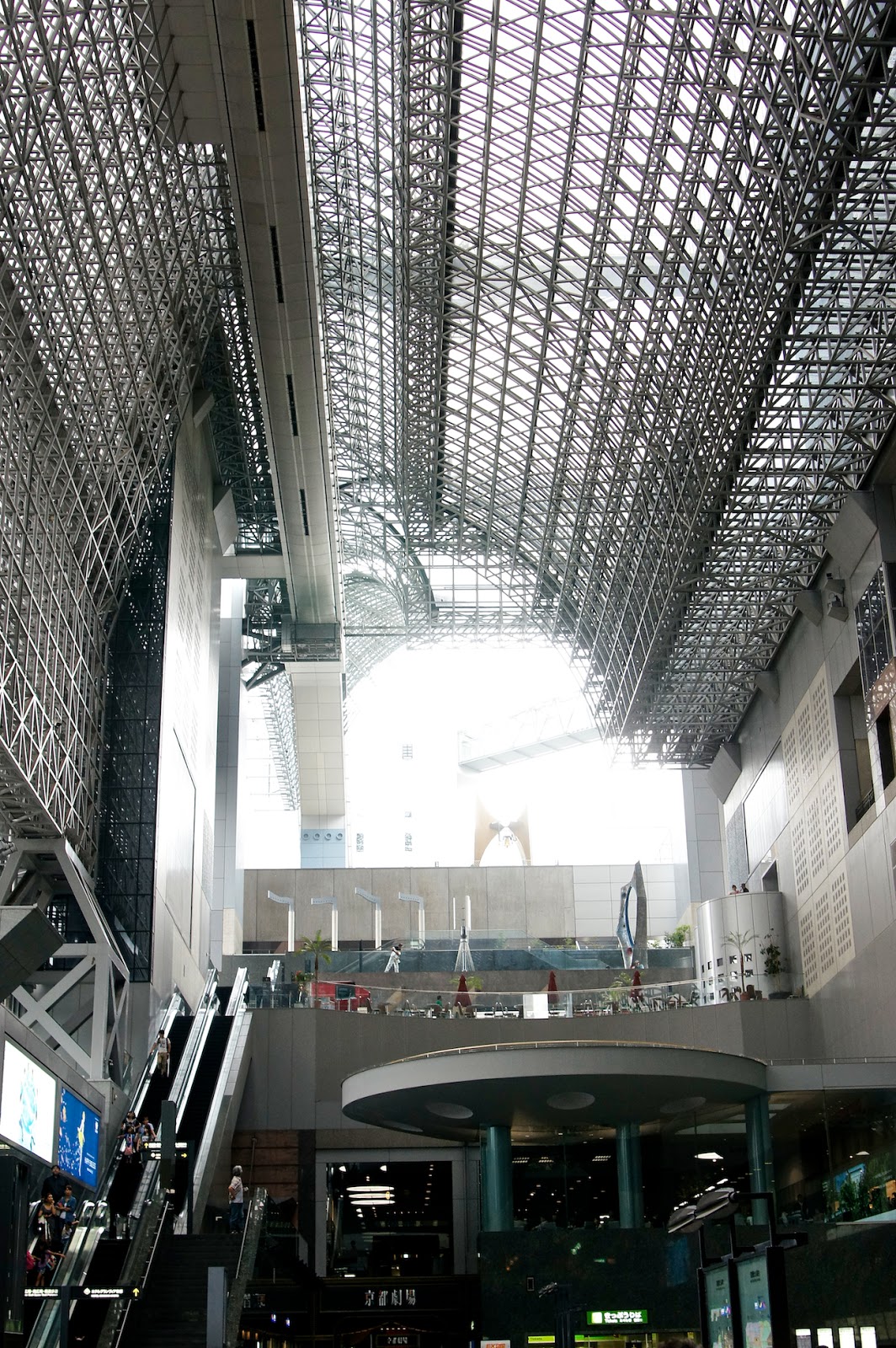進入到京都車站大廳,只能滿口讚歎,很難想像一個車站可以搞成這樣,鋼架的屋頂讓人完全沒有壓迫感,自然採光也使室內非常明亮。