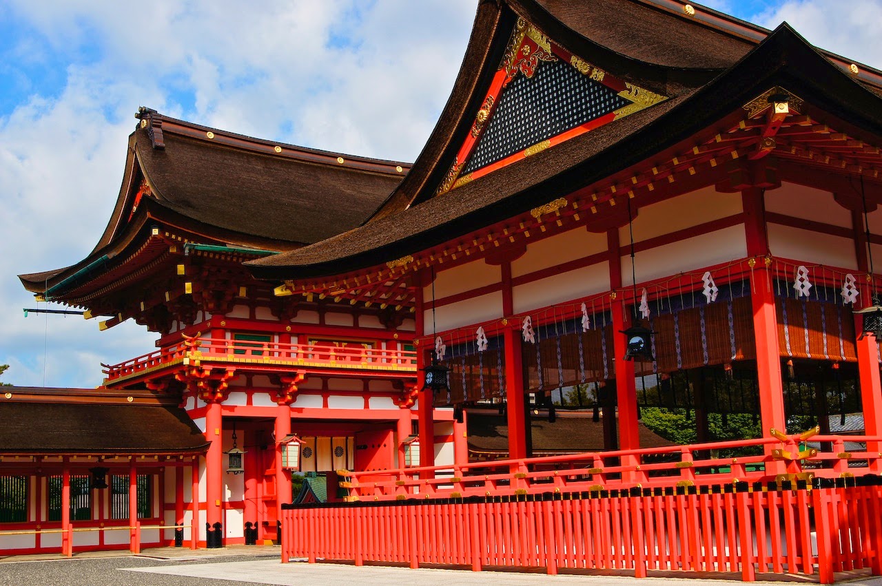 伏見稻荷站下車後沿著指標走一小段路就會到伏見稻荷大社,沿途看得出來已經是有點鄉村的風情了,但這邊仍然是很指標性的一個觀光景點,因此該有的名產店不會少。