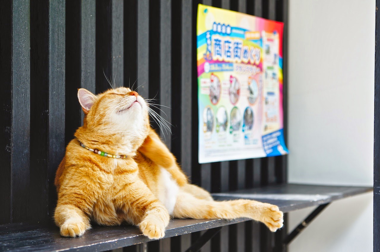 店家養的貓,慵懶的抓完癢繼續睡牠的覺,彷彿沒有旁人的存在。