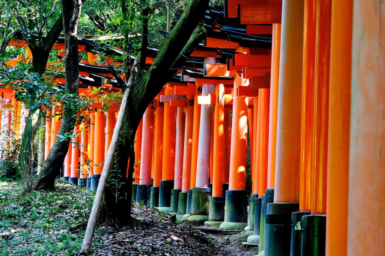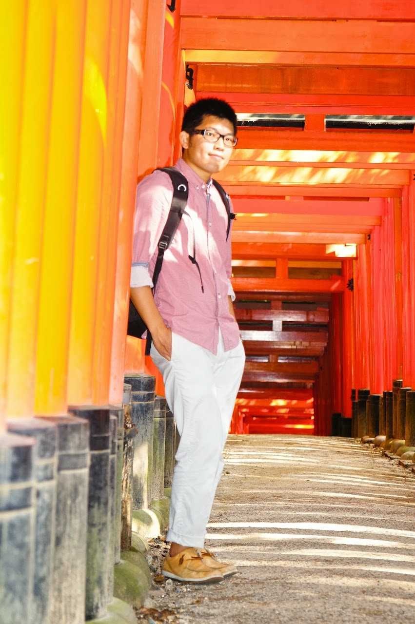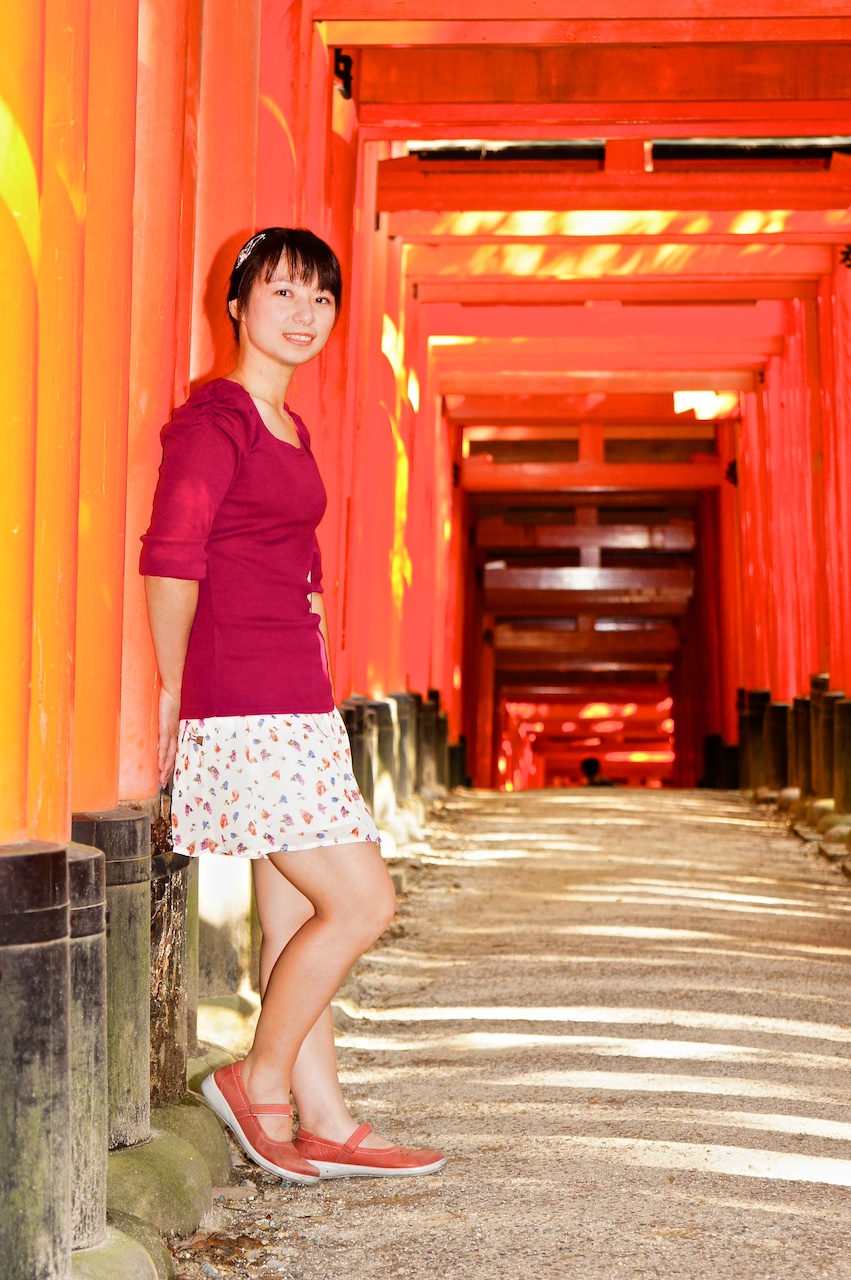 這次去看到一張海報一半是千本鳥居一半是樹林,不過我沒找到那個角度,就湊活著用吧。