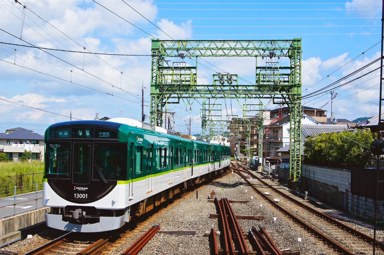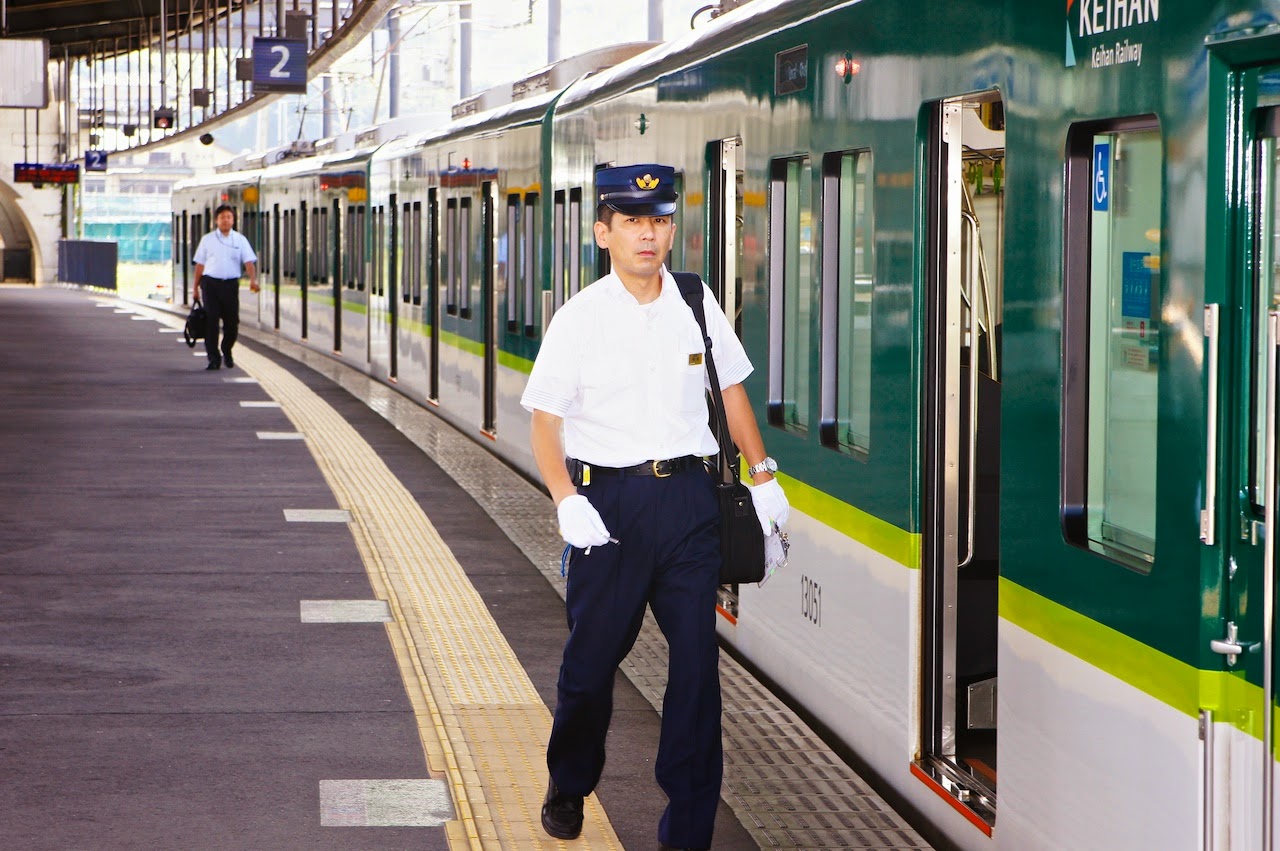 到宇治要在中書島站轉宇治線然後搭到最後一站下車,由於是終點站加平日,車上是沒什麼人的。電車車長似乎是從原本的車頭走過來,為往中書島站發車作準備。截至目前為止,在日本看到的車站站務人員幾乎都是標準身材到偏瘦。