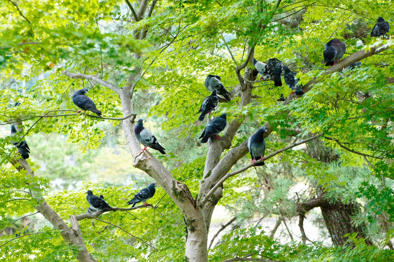 這是來日本後第一次看到成群的鴿子,最常見的鳥類就是烏鴉,對麻雀倒沒什麼印象。