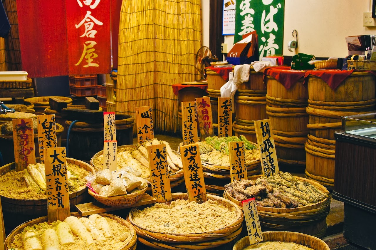 錦市場還有一樣令人難忘的東西,就是這些醃漬醬菜,那個味道很經典...錦市場味道最難聞的地方應該就是這些醬菜攤附近,但生意似乎很好啊!?