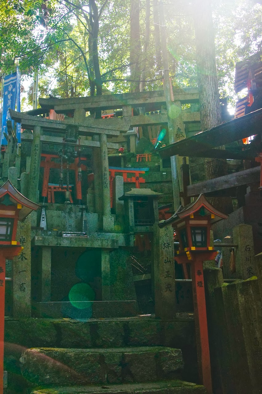 這次去看到一張海報一半是千本鳥居一半是樹林,不過我沒找到那個角度,就湊活著用吧。