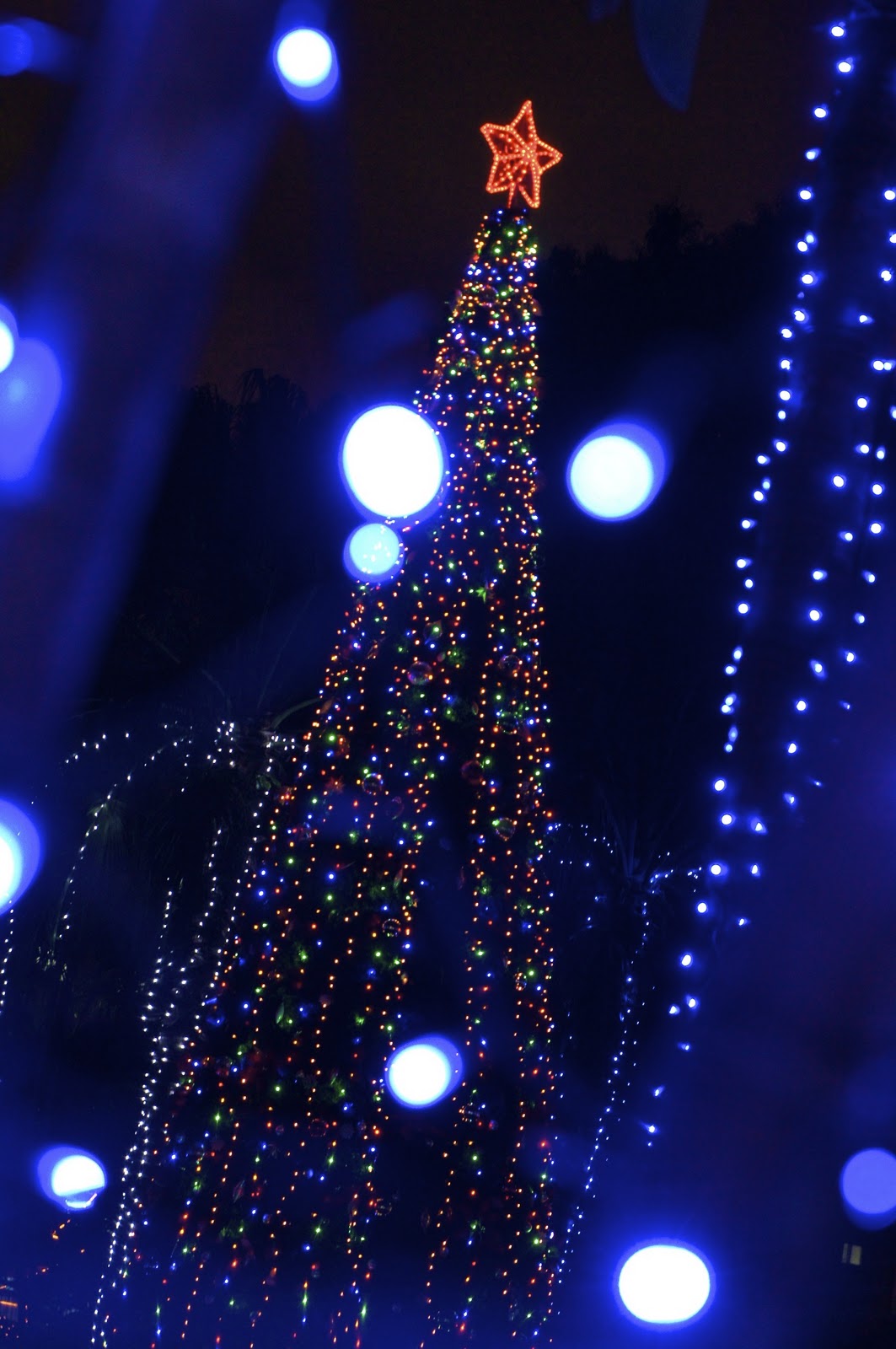 樹很高,但因為是小小的led燈泡加上不會發亮的白色字版,所以顯得有點暗。